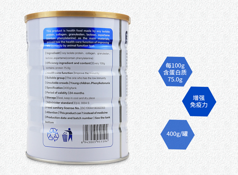 商品名称:初元牌蛋白粉400g