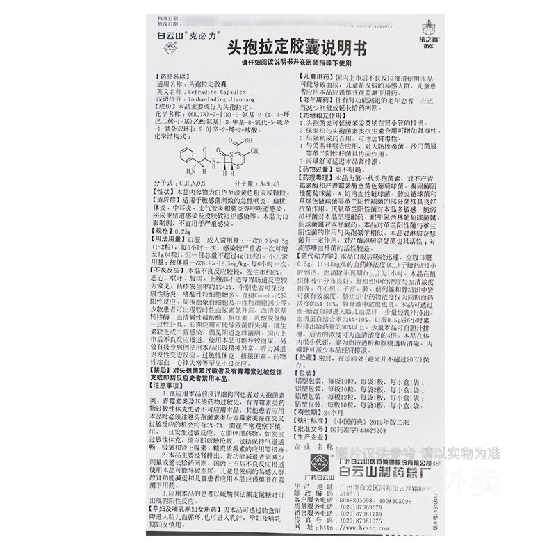 商品名称:头孢拉定胶囊